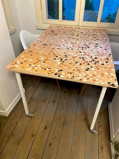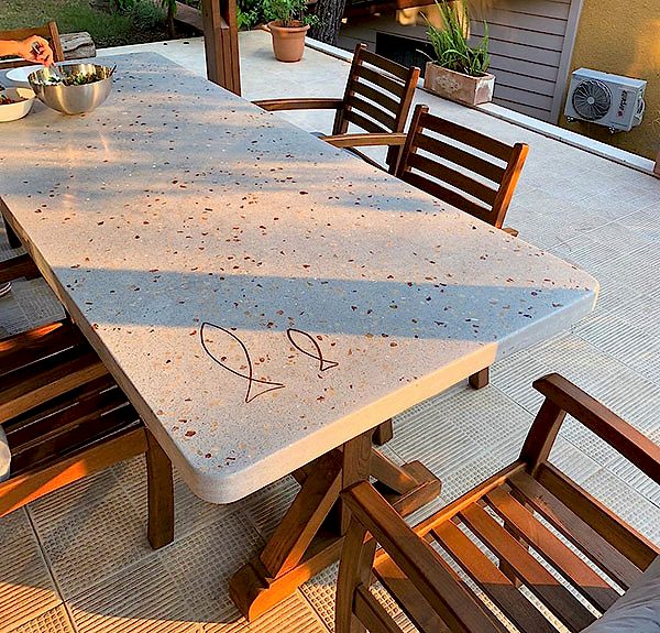 100x250 cm Gri Terrazzo Masa (Pirinç Figürlü)